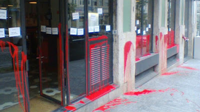 Julgava que no meu país as pessoas tinham respeito pelos outros e não alinhavam em discursos de ódio e em actos de intimidação. Mas parece que afinal há um partido, que está praticamente no governo, que considera normal apelar a um restaurante para que não participe num evento culinário internacional em Israel. E quanto o restaurante decide apesar disso participar nesse evento, tem como resposta a vandalização do seu espaço, que esse partido qualifica apenas como acção directa. Isto porque o apelo anterior tinha sido uma "acção indirecta alimentada por cartas educadas a apelar para que Avillez não participasse". Já se fica assim a saber o que acontece a quem não se deixa intimidar por este tipo de "acção directa" que este partido apoia, a fazer lembrar outras "acções directas" de triste memória. E também ficamos a saber o tipo de partidos que António Costa colocou em Portugal como sustentáculo do seu governo. Porque não haja ilusões: a imagem que está acima não é muito diferente da que está abaixo.